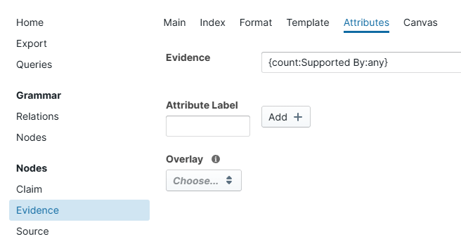 These attributes can be handy for sorting/querying nodes. For instance, if you create a discourse attribute for Claim nodes that is a function of the number of Evidence nodes that Support the Claim, like this: